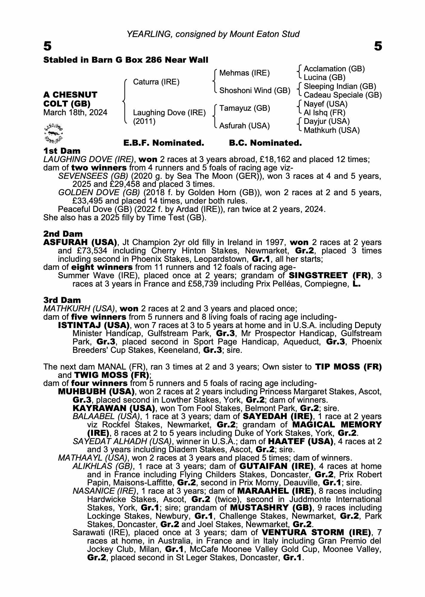 Consignor: Mount Eaton Stud