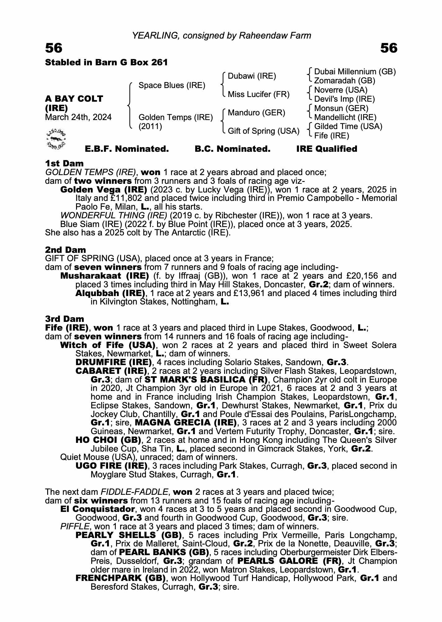 September Yearling Sale 2023 lot 182 F. by Blue Point (IRE) 2022, Castletown Quarry Stud=>SackvilleDonald / Manor House Stables €70,000