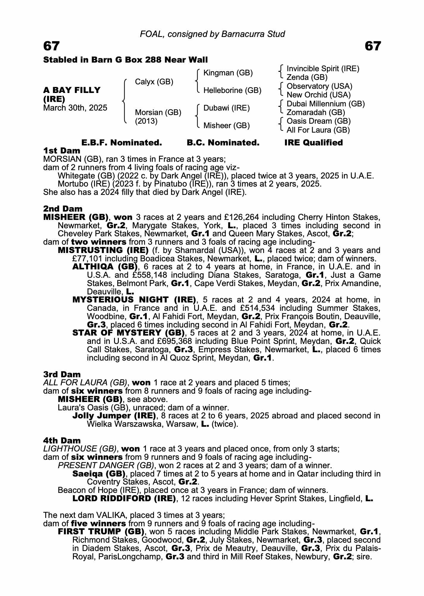 Consignor: Barnacurra Stud