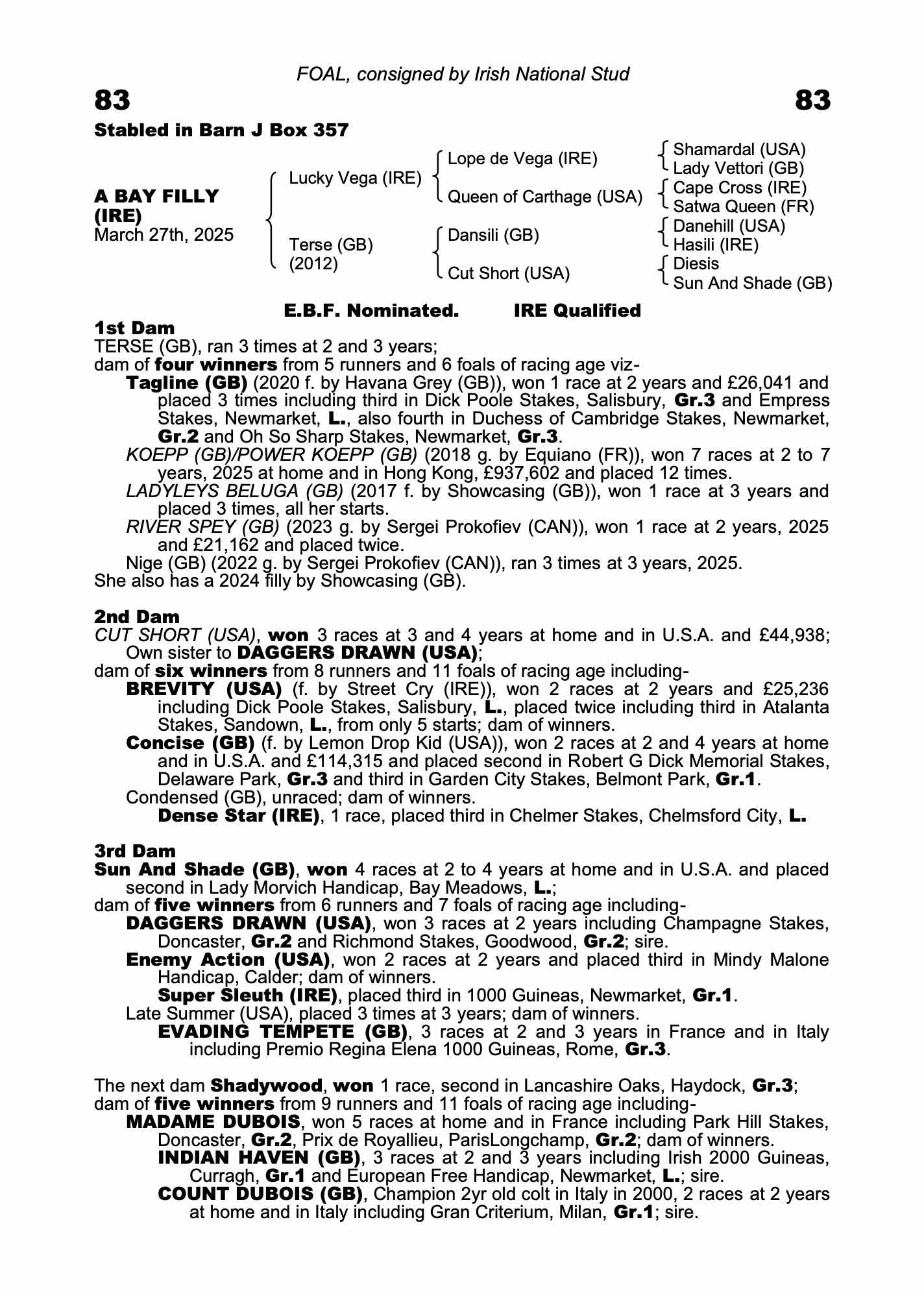September Yearling Sale Part 1 2025 lot 253 F. by Showcasing (GB) 2024, Irish National Stud=>KGS €10,000