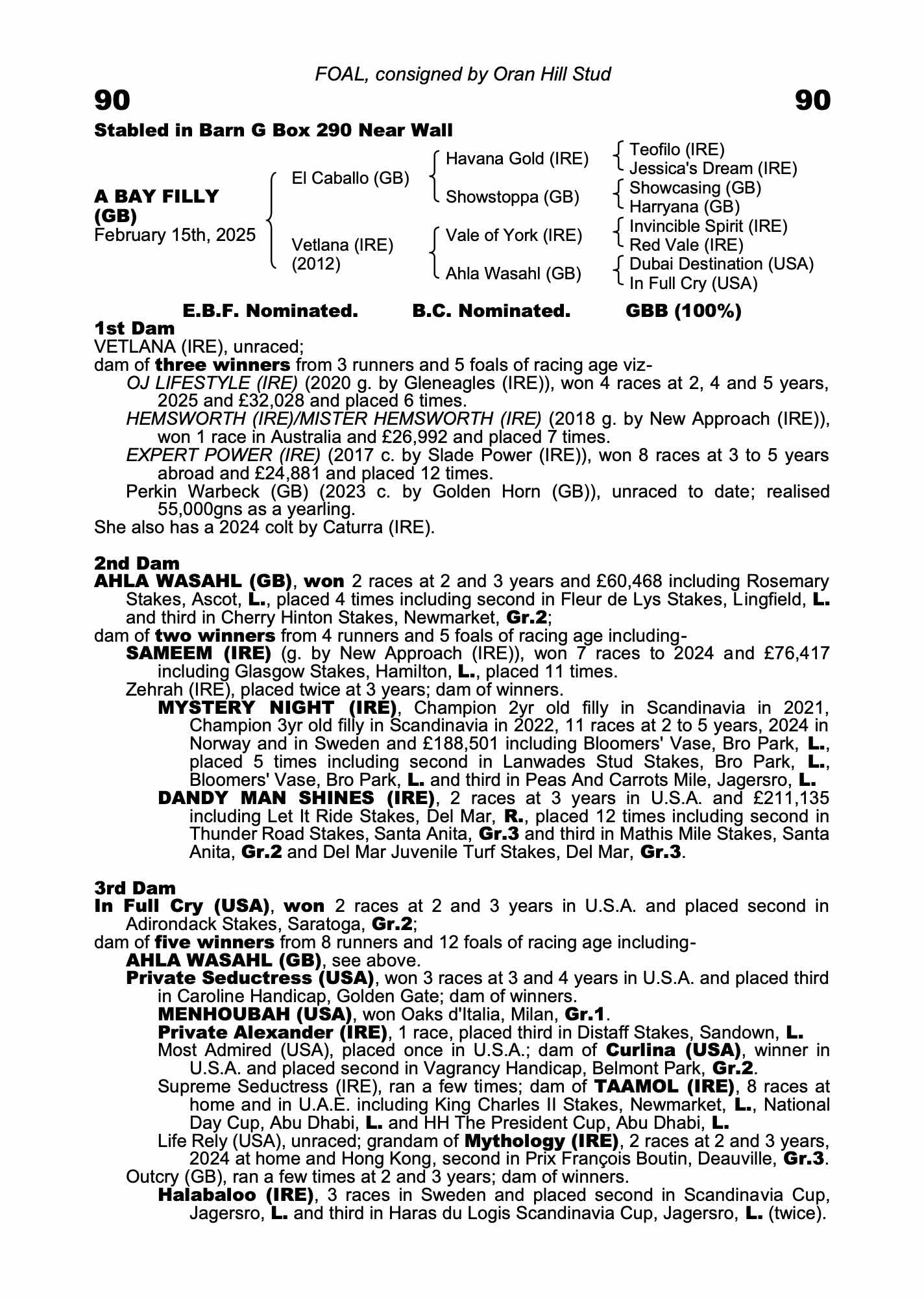 Consignor: Oran Hill Stud
