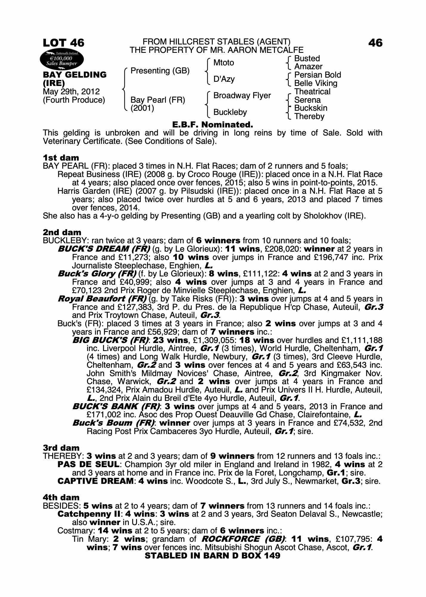 Cheltenham Festival Sale 2017 lot 16, Loughanmore Farm ( I.R.Ferguson)=>Tom Malone £260,000