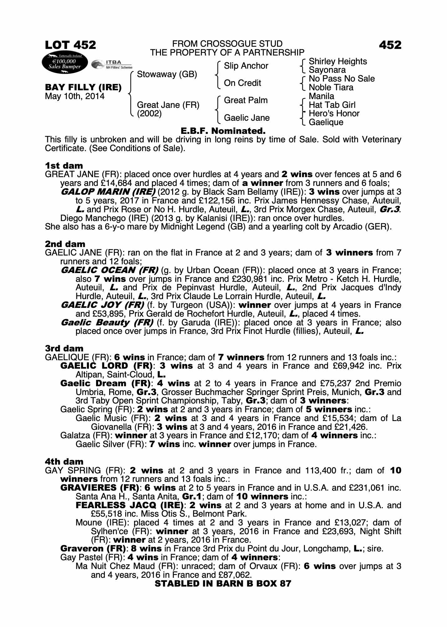Consignor: Crossogue Stud