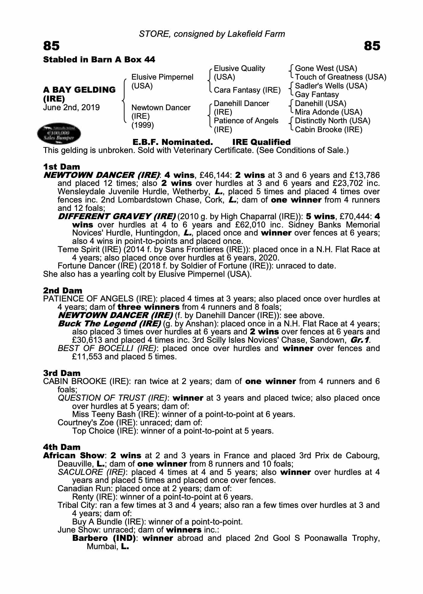 Derby Sale 2013 lot 33 G. by High Chaparral (IRE) 2010, Glenwood Stud=>Lot Not Sold €14,000