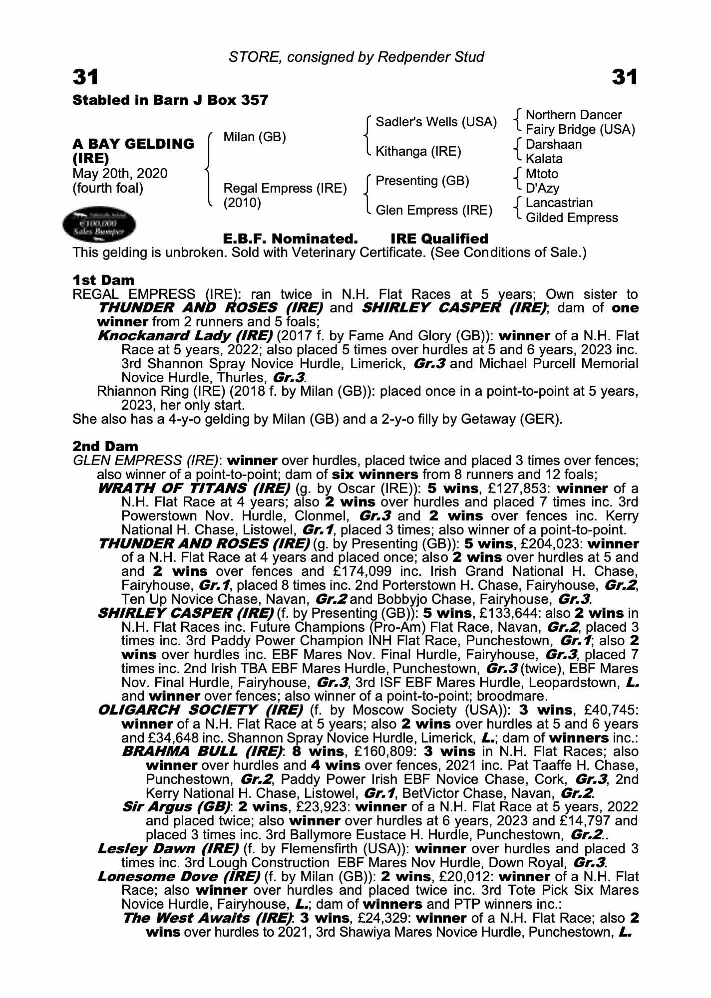 Consignor: Redpender Stud