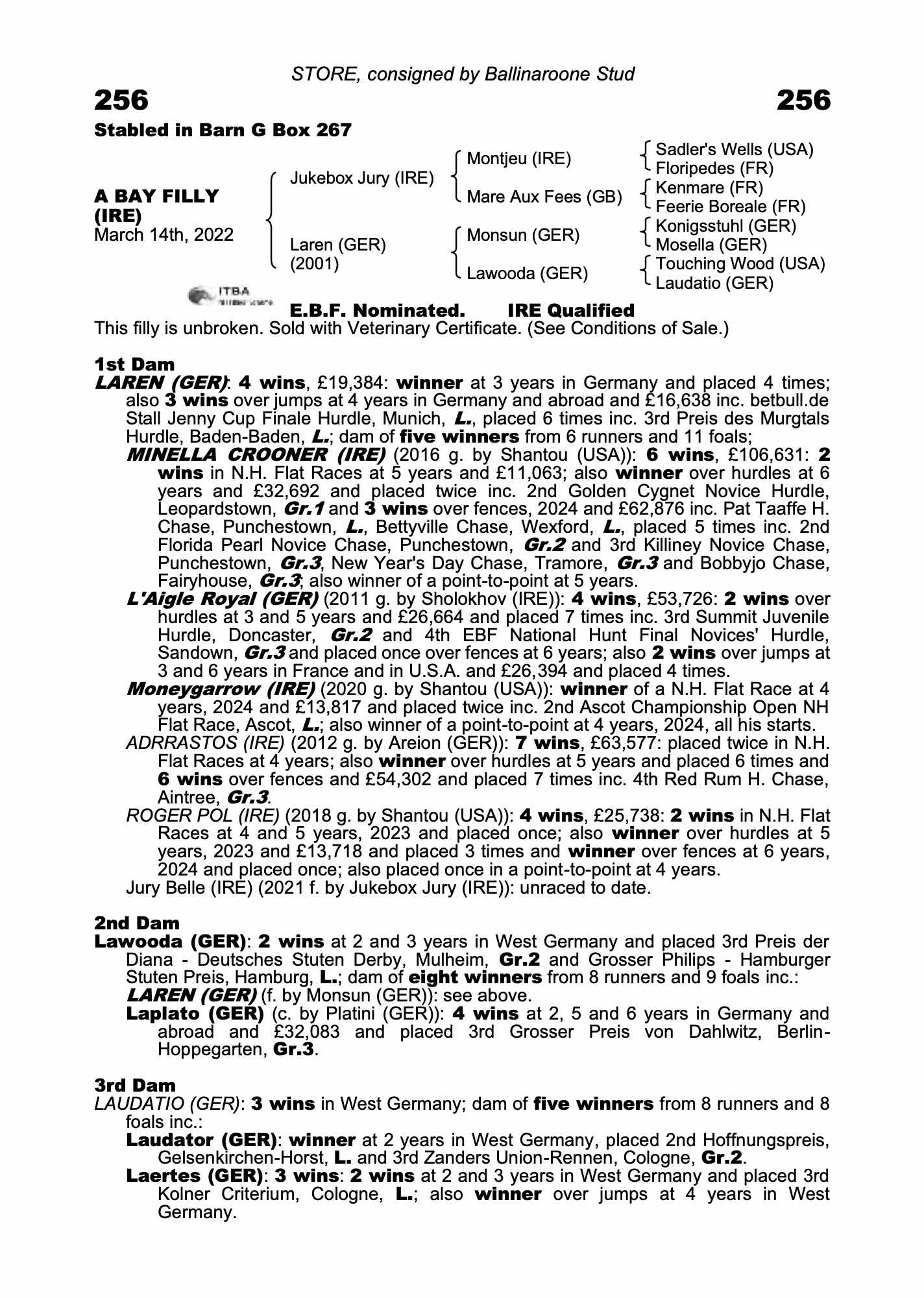 November National Hunt Sale 2022 lot 845, Hobby Horse Stud=>Ballinaroone Stud€30,000