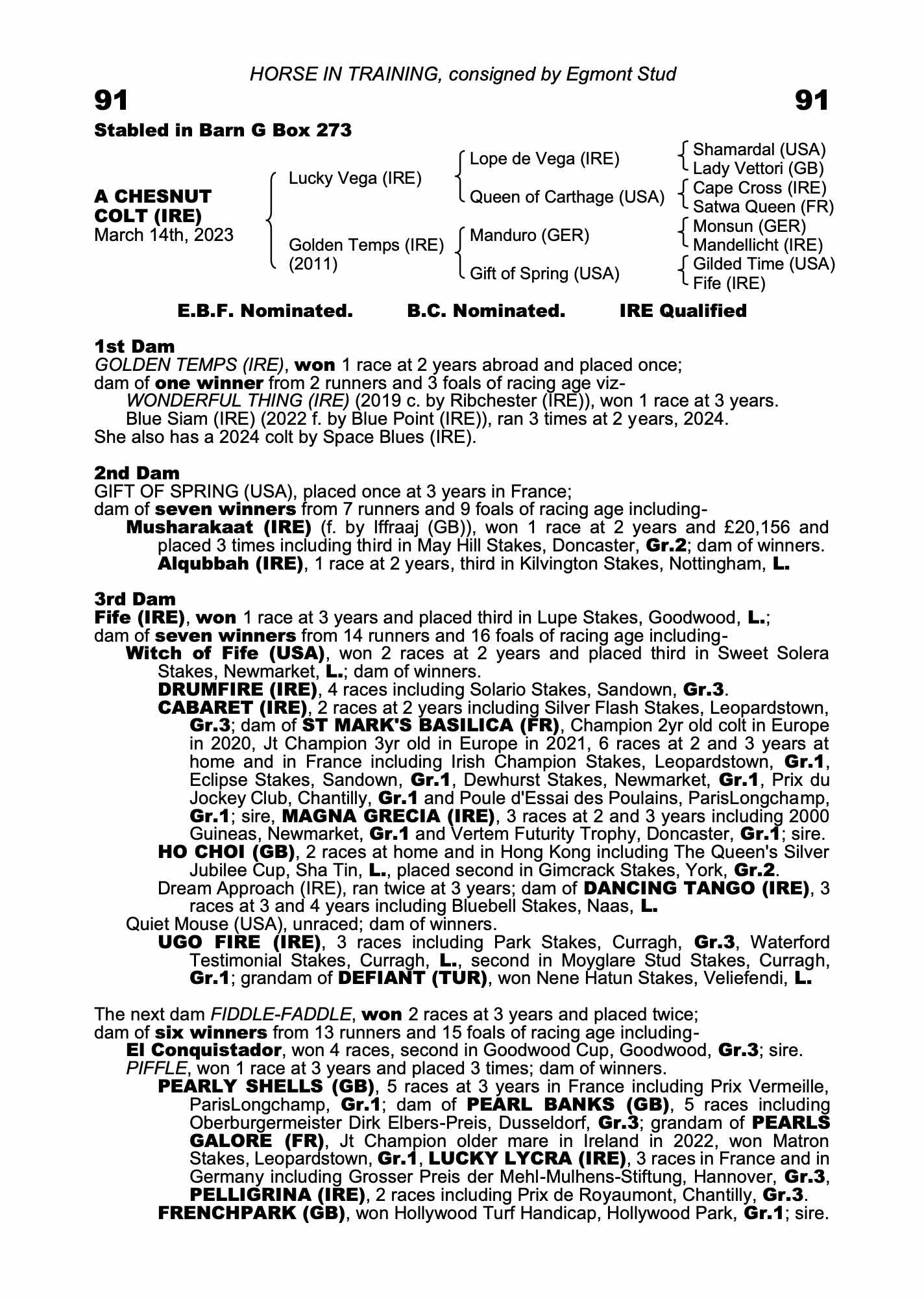 Consignor: Egmont Stud