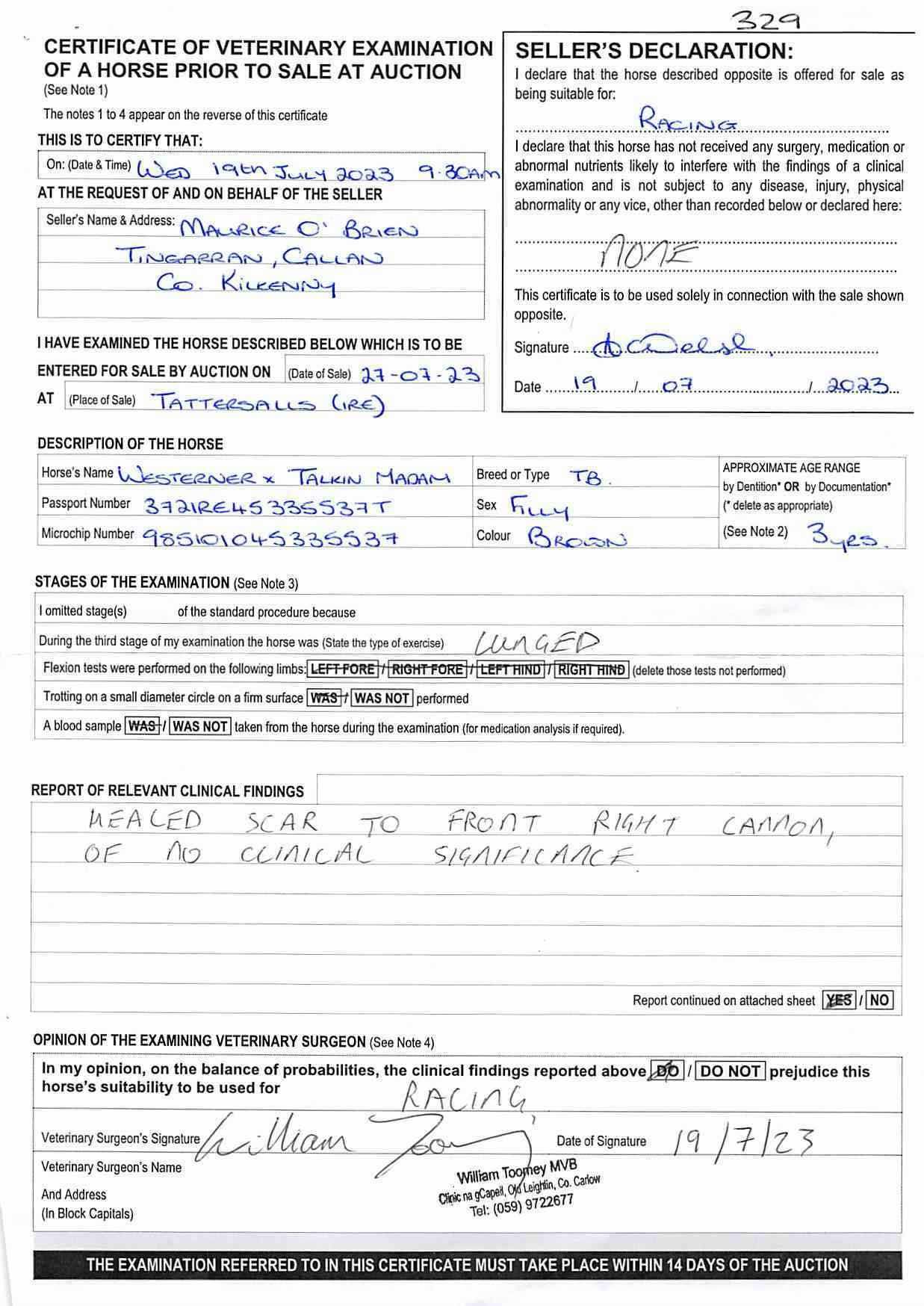 November National Hunt Sale 2020 lot 328, Kells Lodge Stud=>Lot Not Sold €9,000