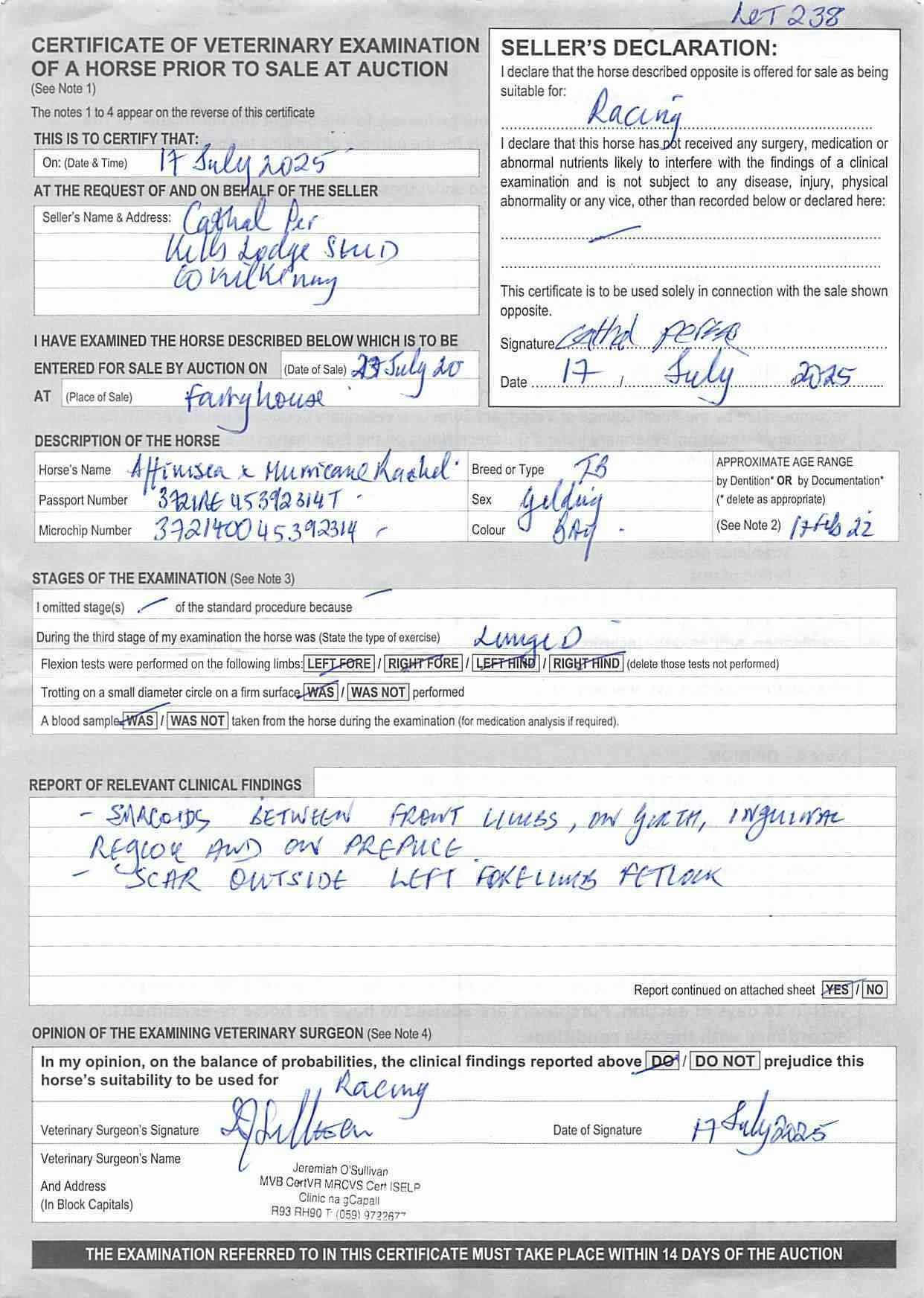 Consignor: Kells Lodge Stud