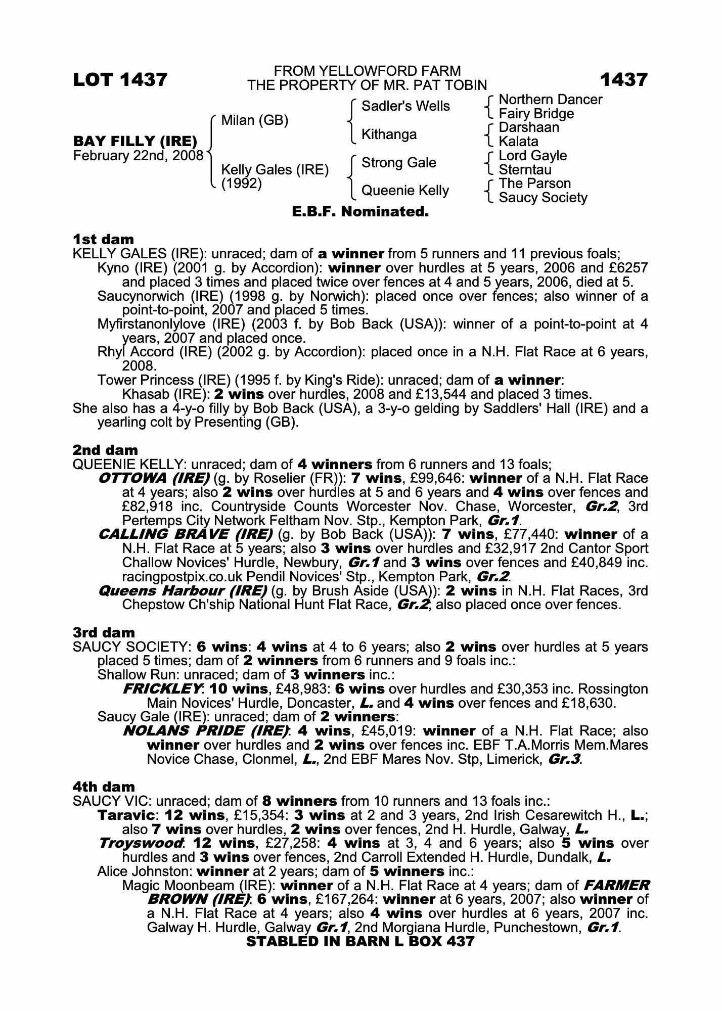 November National Hunt Sale 2008 lot 116 F. by BobBack 2004, Leachestown Stud (Agent),=>Lot Not Sold €11,500