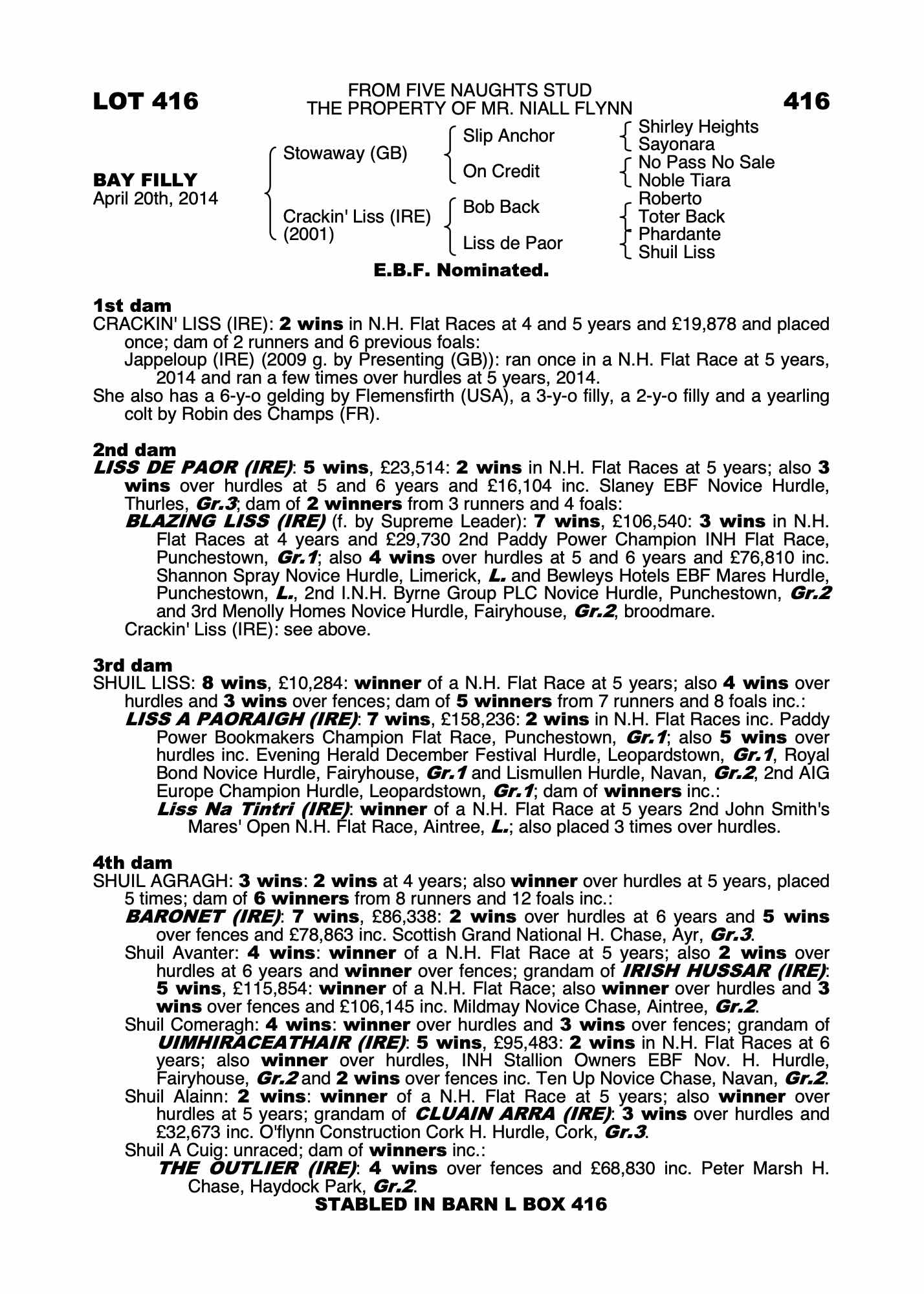 Derby Sale 2014 lot 204 F. by Robin des Champs (FR) 2011, Coolcormack Stud=>Francis Flood €48,000