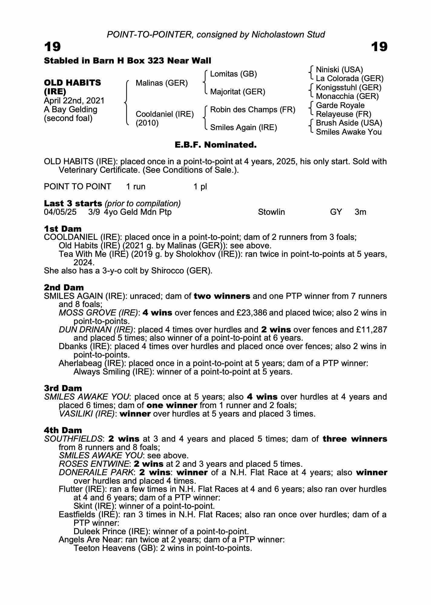 A four-year-old son of Malinas who brings placed form into the sale. He finished third on his debut at Loughrea, where he disputed the lead through the halfway point and ending in a promising third. That race did contain some well-regarded debutants and there should be more improvement forthcoming.