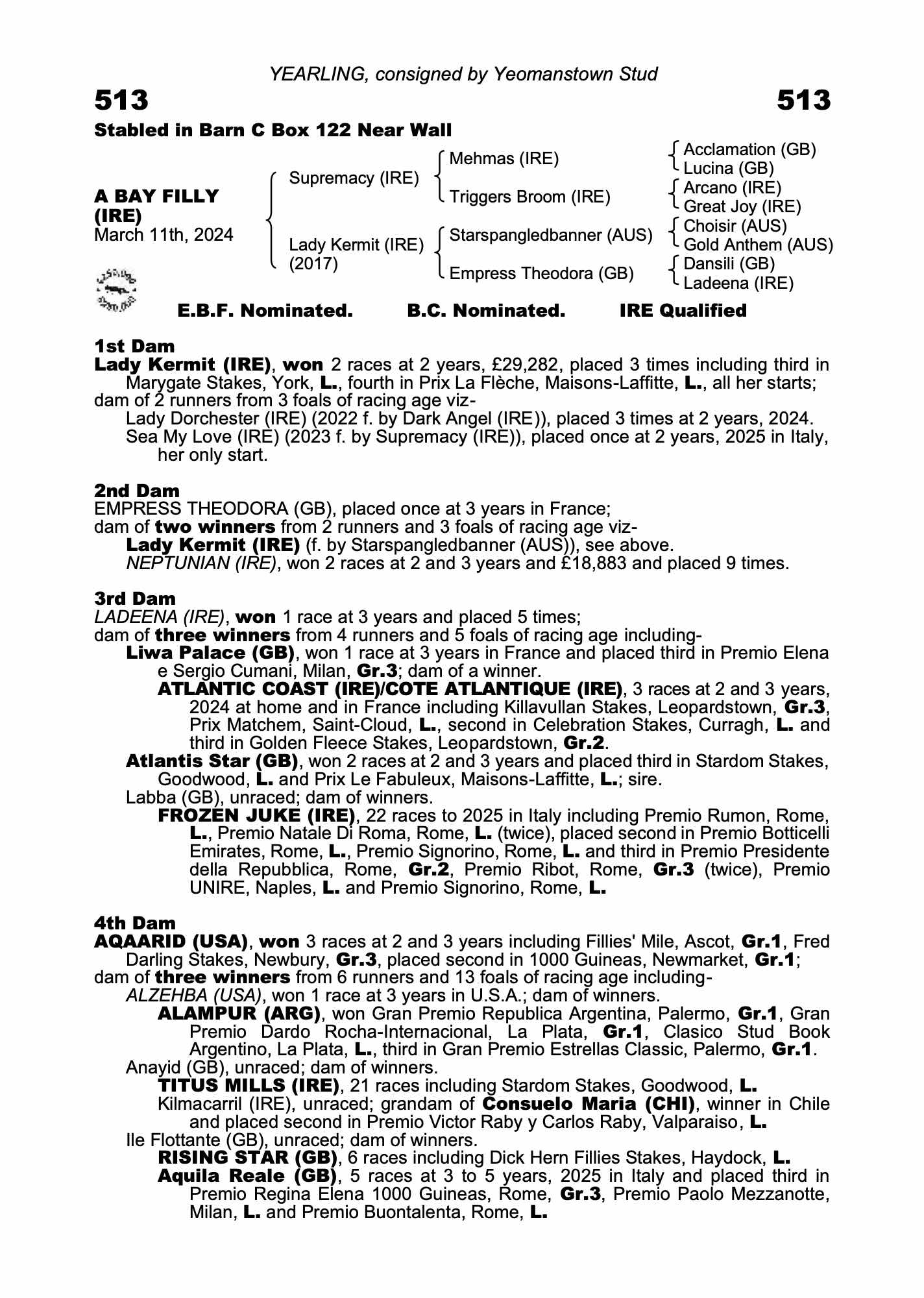 September Yearling Sale Part 1 2024 lot 114 F. 2023, Grangemore Stud=>Aurelio Golino €4,000