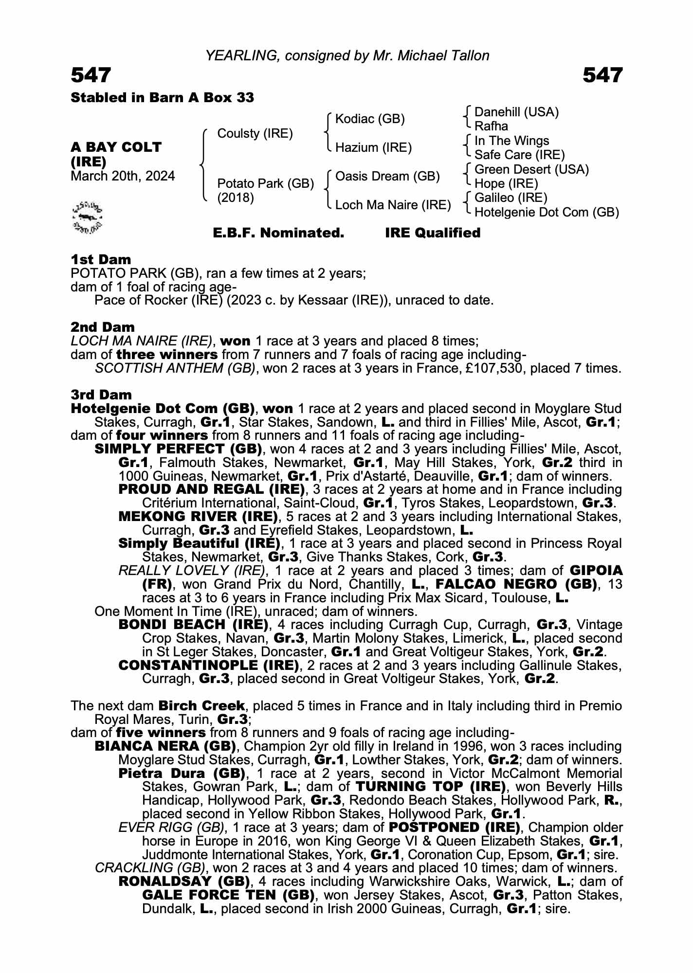 Greenville House Stud=>M Tallon