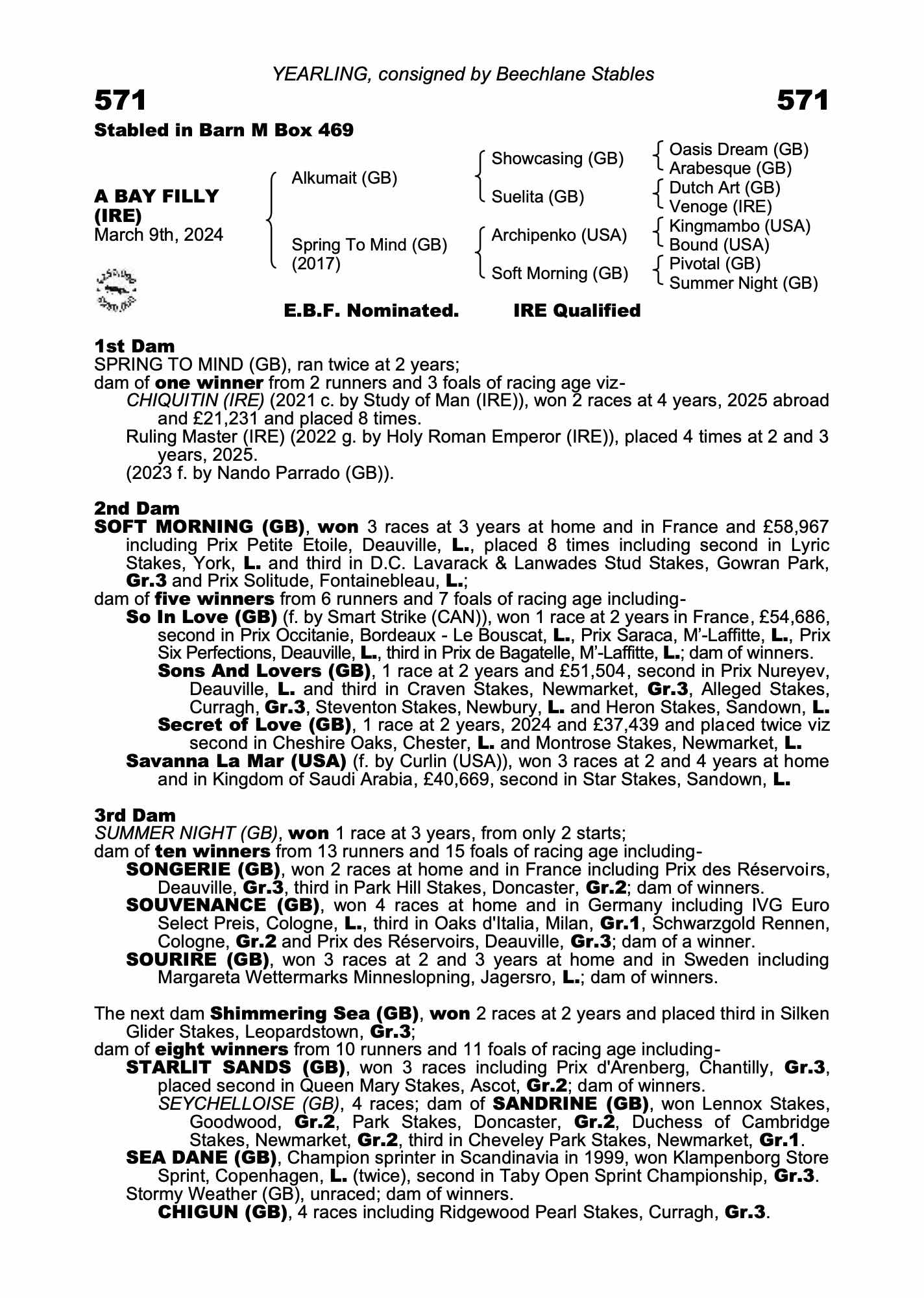 Sapphire Sale 2024 lot 983, Olive O'Connor Bloodstock=>Beechlane Stables €2,000