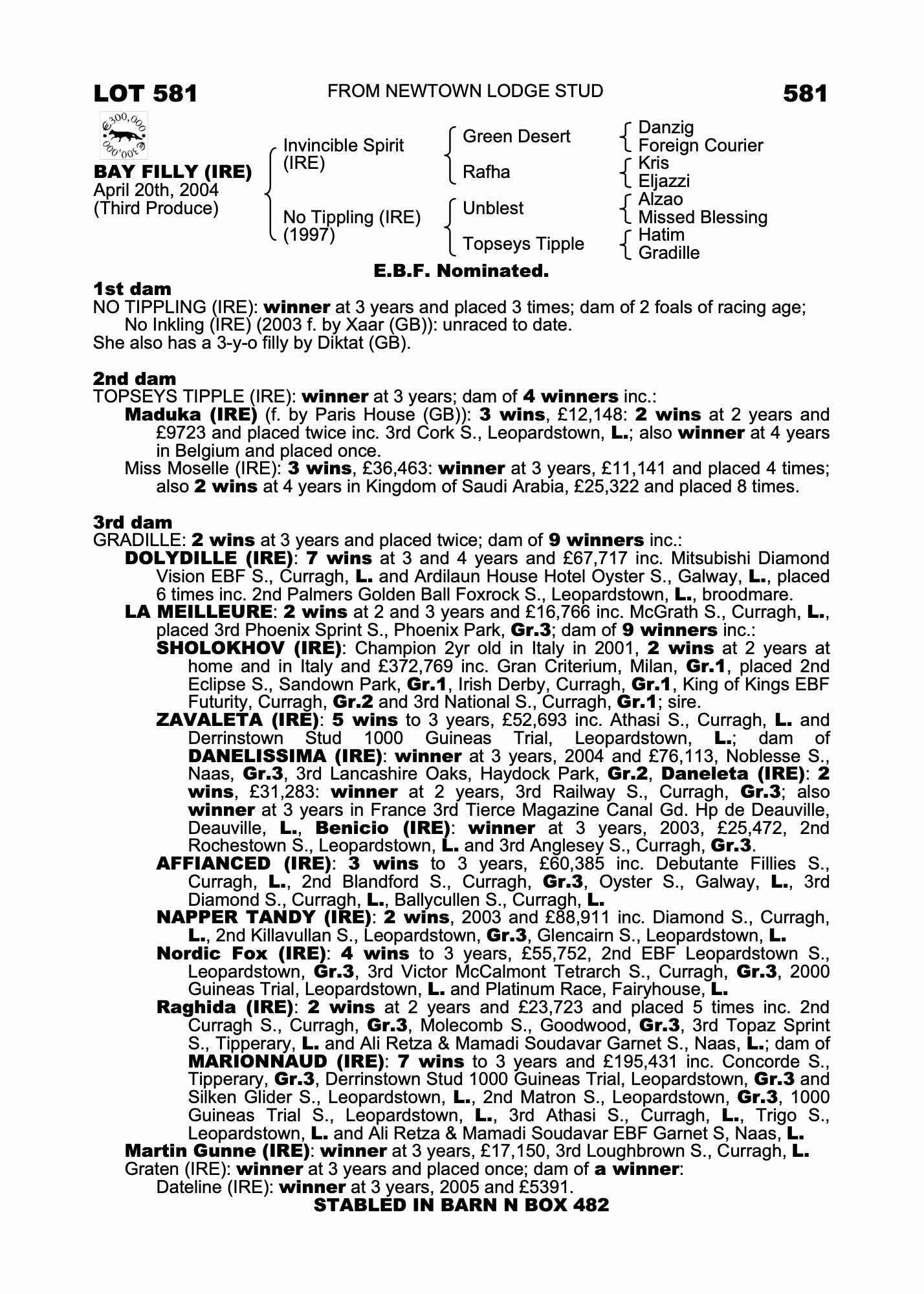 September Yearling Sale 2004 lot 565 F. by Xaar 2003, Monksgrange Stud=>P. Carey €26,000
