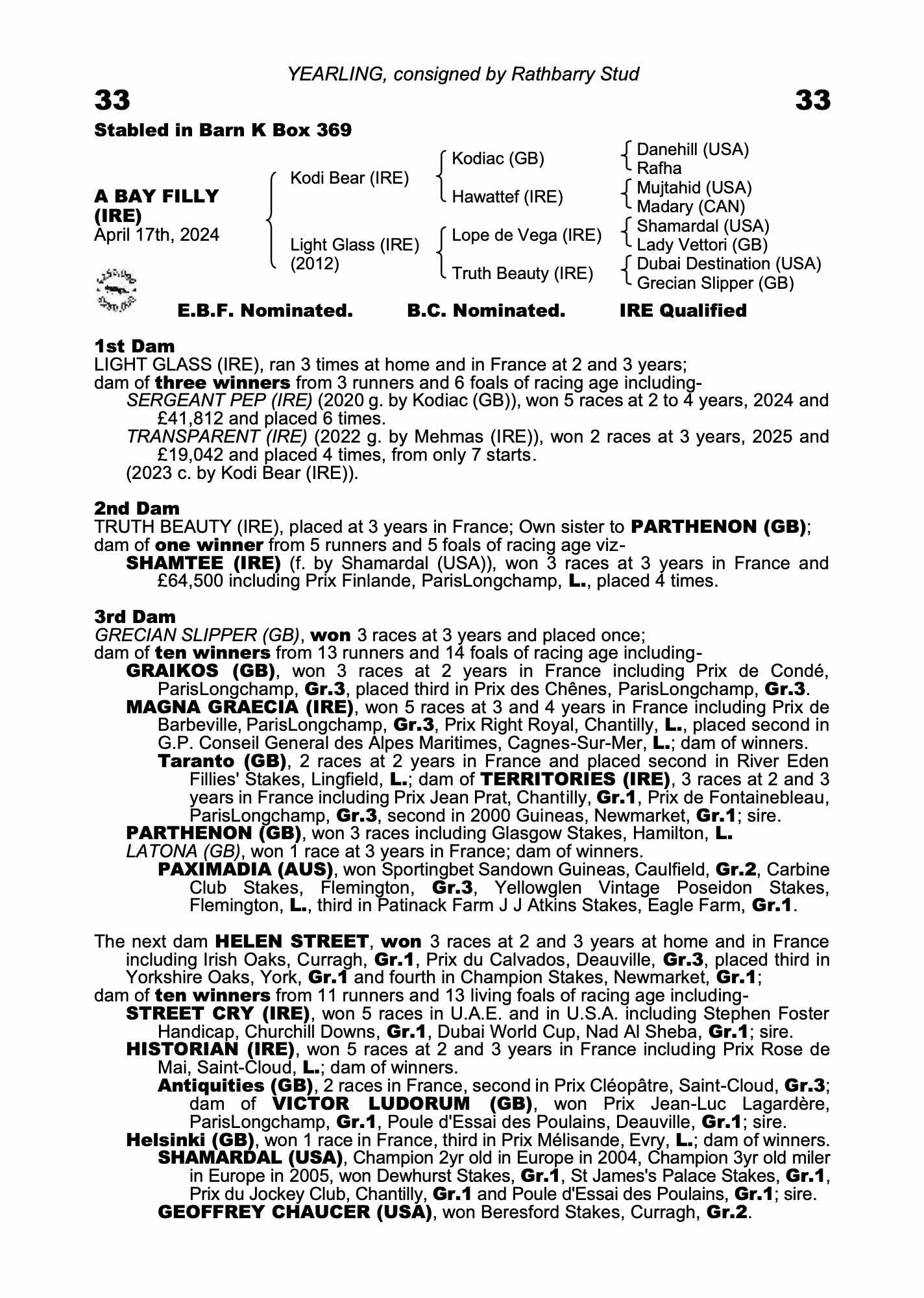 Consignor: Rathbarry Stud