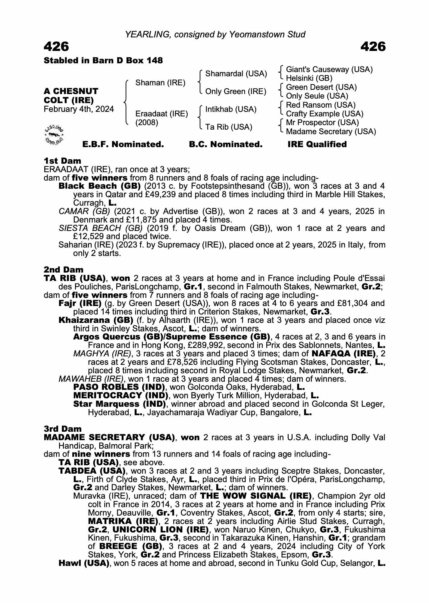 Consignor: Yeomanstown Stud